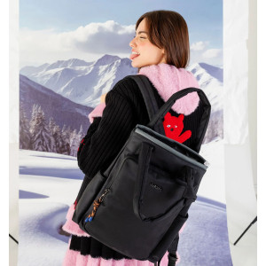 è uno Zaino in tessuto di nylon con opzione di utilizzo come borsa a spalla. Spallacci imbottiti e regolabili per un maggiore comfort, manico a spalla con dettaglio nodo. Chiusura con zip metallica e tiretto personalizzato. Presenta doppia tasca interna, di cui una con zip, e uno scomparto per il computer. Fodera interna in tono. Ampia tasca frontale esterna con zip e due tasche laterali. Placchetta esterna con logo in metallo.