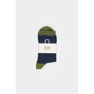 I calzini in cotone rigenerato Nello di Rifò sono unisex e vestono circa 13 cm sopra la caviglia. Disponibili in più combinazioni di colore, sono realizzati sia a righe che nella versione bicolor con logo Rifò in jacquard.