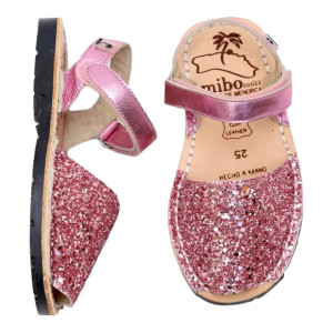 La vera Minorchina Kids di Mibo è realizzata in morbida pelle e glitter in vari colori e presenta un comodo cinturino sul collo del piede con una chiusura a velcro. La classica suola in gomma è antiscivolo mentre la pianta è realizzata in spessa pelle di vacchetta naturale. Questo sandalo tradizionale è caratterizzato da comfort, resistenza e design minimalista ed un leggero tacco di 1,5 cm. Uno dei nostri best-seller per la bella stagione, è realizzato a mano con materiali di alta qualità per offrire durata, resistenza e comfort oltre che eleganza.