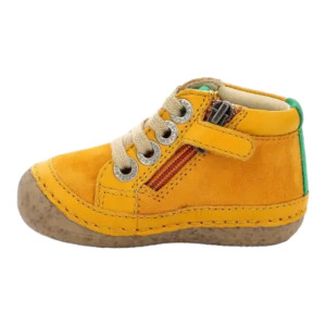 Il modello Sonistreet di Kickers sono un paio di scarpine alte da bambini composti da una tomaia e da una fodera in pelle.  Si adatta ai piedi di tutte e risultano facili da far calzare grazie alla sua chiusura con lacci e zip laterale Questi stivaletti ti garantiscono comfort e robustezza grazie al suo sottopiede in 100% pelle e alla suola super flessibile che li rende ideali come scarpine primi passi.