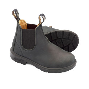 I Blundstone #1325 hanno un look sportivo e grintoso per lo stivaletto da bambini in stile Chelsea più noto del mondo. Realizzati con tomaia in pelle oleata e pregiata con effetto invecchiato. Il suo colore è un caldo nero Rustic Black in Crazy Horse. Presenta i classici elastici laterali in tinta e linguetta, anteriore e posteriore che ne facilitano la calzata al bambino. Il plantare è sagomato in EVA Poron® XRD ™ per il massimo comfort  mentre la tecnologia XRD® nel tallone assorbe al massimo degli urti. Una scarpa dalla calzata comoda ed alla moda della serie Classics testato dai bambini e approvato dai genitori è un punto di incontro tra lo stile classico e la praticità.