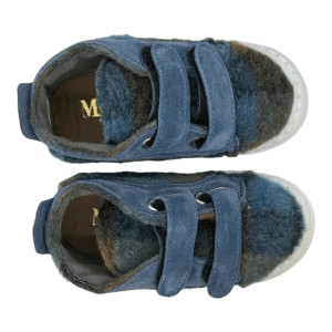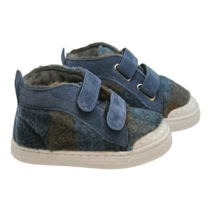 La nostra scarpina D06 Lana Velcro della linea Macchi 1941Kid  è un polacchino alto alla caviglia che ha una comoda chiusura con due strappi a velcro sul collo del piede che renderà indipendente il tuo bambino.E' prodotta interamente e con amore dal nostro artigiano di fiducia che sa lavorare con professionalità e usa materiali di alta qualità. La tomaia è in tessuto con effetto lana scozzese con inseriti in crosta di pelle. Al suo interno la fodera ed il sottopiede estraibile,  sono in microfibra per avere il massino calore senza sudare. Questa scarpina ha la suola antiscivolo ed è prodotta con pvc andando a recuperare gli scarti della produzione per un mondo più green. La sapiente lavorazione artigianale unita al fatto di poter personalizzare la scarpa con di altri colori rendono ogni calzatura unica e ricercata per un prodotto fatto a mano e 100% Made in Italy.