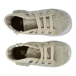 Le nostre Sneakers Alte con cerniera Teddy in mix con camoscio sono prodotte con attenzione e amore interamente in Italia. Per noi è un piacere sbizzarrirci nel produrle, accostando pellami a lana, tessuti e glitter . Scegliamo personalmente ogni materiale per creare una calzatura made in Lombardia e prodotta con amore e passione da Deborah e Tino. Questa versione presenta una tomaia alla caviglia con effetto Teddy ed una linguetta in camoscio in tinta. Sono interamente foderate di microfibra ed hanno una comoda chiusura a cerniera abbianata al classico laccio...farle calzare al tuo bambino sarà così un gioco da ragazzi. Al suo interno un morbido sottopiede estraibile ed in pelle accoglierà il tuo piede. La suola è prodotta tramite iniezione in PVC prestando attenzione al recupero degli scarti per renderla il più possibile ecologica.