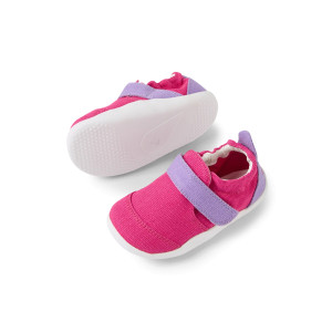 adatta a tutti i bimbi che iniziano a fare i primi passi e che stanno sviluppando il senso dell'equilibrio e la muscolatura di piedi e caviglie. I materiali sono morbidi e sicuri e la forma della suola rispecchia la forma del piedino in crescita garantendo lo sviluppo della sensibilità propriocettiva.