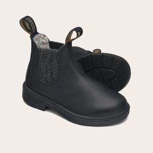 I Blundstone #2096 Kids hanno un look sportivo e grintoso per lo stivaletto da bambini in stile Chelsea più noto del mondo. Realizzati con tomaia in pelle nera resistente all'acqua, si caratterizza per l’elastico laterale argento su ambo i lati. Presenta i classici elastici laterali e linguetta, anteriore e posteriore che ne facilitano la calzata al bambino. Il plantare è sagomato in EVA Poron® XRD ™ per il massimo comfort  mentre la tecnologia XRD® nel tallone assorbe al massimo degli urti. Una scarpa dalla calzata comoda ed alla moda della serie Classics testato dai bambini e approvato dai genitori è un punto di incontro tra lo stile classico e la praticità.