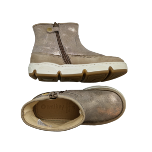 Questi tronchetti Walkey da bambina sono realizzati in nabuk dall'effettos shimmer e luminoso con un inserto in nubuck beige. Hanno una pratica cerniera laterale che ne facilita la calzata, la fodera ed il sottopiede estraibile  sono in pelle testata e certificata Metal Free con estratti di Aloe Vera. Il fondo è ultraflessibile in gomma antiscivolo per accompagnare in tutta sicurezza i primi passi dei vostri piccoli. La morbidezza dei materiali selezionati da Walkey garantisce la massima libertà di movimento.