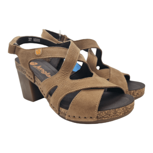 Il Sandalo 8005 di Jungla è caratterizzato da un comodissimo tacco di 8cm. La chiusura a velcro sulla caviglia è pratica e precisa. La tomaia è in morbida pelle effetto nubuck con listini incrociati e grazie alla sua forma che accoglie dolcemente il piede ti garantirà la massima comodità. La suola è in gomma antiscivolo mentre il plantare è un misto sughero e a sua volta è rivesito in microfibra super traspirante e morbida.  Ideale per chi vuole una calzatura estiva comoda e versatile per ogni occasione.