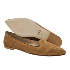 La Slip-On Mocassino P221 è una dell novità della stagione ed è prodotta interamente ed artigianalmente in Italia. Leggerezza, flessibilità e pellami extra morbidi sono le caratteristiche di questa scarpina fatte con amore. La particolarità di questo modello è la forma che rimane più appuntita ed affusolata. La tomaia è in morbido camoscio foderato in pelle e tessuto mentre il sottopiede è in pelle liscia. La suola è in vero cuoio con un tacco di gomma alto 8mm.