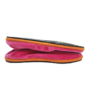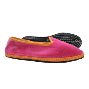 Pantofole della tradizione friulana, chiamate Friulane o Scarpet. Sono create senza l'utilizzo di collanti ma interamente cucite. Coniugano le sapienti tecniche tradizionali con la tecnologia per ottenere un prodotto artigianale unico e confortevole da indossare sia nelle occasioni eleganti che nella vita quotidiana. Questa versione è destrutturata ovvero non stirata e più morbida. Ha la particolarità di essere Bi-colore con il bordino a contrasto rispetto al velluto. La suola in gomma è interamente cucita e la rende ideale anche per l'utilizzo da esterno e quotidianamente. Non presentano scatola ma vengono vendute chiuse su se stesse e piatte. Vero made in Friuli e 100% made in Italy.