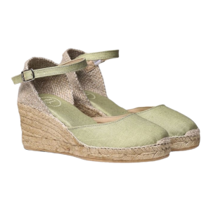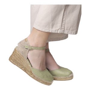 Caldes è il modello di Toni Pons versatil e da indossare in qualsiasi occasione grazie alla sua comodità. La punta è in morbido lino e il tallone in juta ed il cinturino di chiusura con fibbia danno un tocco di eleganza e glamour. La suola interna è foderata in tessuto traspirante mentre la zeppa esterna è fatta in juta e gomma. La parte della tomaia in lino è unita alla suola mediante cucitura a mano con filo di cotone come da vera tradizione. La zeppa ha un'altezza totale di 7 cm, dei quali 5 appartengono al tacco e 2 al plateau. È un modello vegano al 100% poiché non contiene materiali di origine animale.