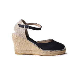 Portbou è il modello di Toni Pons versatil e da indossare in qualsiasi occasione grazie alla sua comodità. La punta è in morbido lino e il tallone in juta ed il cinturino di chiusura con fibbia danno un tocco di eleganza e glamour. La suola interna è foderata in tessuto traspirante mentre la zeppa esterna è fatta in juta e gomma.  La parte della tomaia in lino è unita alla suola mediante cucitura a mano con filo di cotone come da vera tradizione. La zeppa ha un'altezza totale di 9 cm, dei quali 7 appartengono al tacco e 2 al plateau.