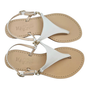 Il classico Sandalo Caprese a Triangolo con gancetti dorati ed in nappa è prodotto dal nostro artigiano di fiducia secondo la tradizione locale. Questo Sandalo Caprese con tomaia composta da un triangolo in pelle che parte dal collo del piede fino a raggiungere l'infradito. La caviglia è circondata da un sottile cinturino di pelle regolabile con una classica fibbia dorata. La Suola è in vero cuoio 100% italiano e a contatto con il piedi garantisce traspirabilità. La tomaia in vera pelle  selezionata di prima scelta è cucita a mano in cotone resistente e duraturo. Il sottopiede in cuoio è cucito rigorosamente a mano alla suola con fibre naturali di alta qualità. Il tacco alto 1,5 cm è leggero e resistente in cuoio e gomma antiscivolo.