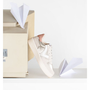 Il modello Madrid Nylon Metal  è una  sneakers bestseller di Victoria caratterizzata da un mix tra tessuto nylon e crosta di pelle. Presenta degli inserti in crosta di cuoio e dettagli in pelle e nylon metallizzato. Sono foderate in tessuto e cotone e sono  traforate sulla punta per garantire ai vostri piedi massima traspirabilità. Suola in PVC trattata con oli vegetali invece di minerali nella composizione per renderle più ecologiche.