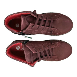 La Sneakers di Jungla 7552 è alta alla caviglia e facile da calzare grazie alla comoda cerniera interna ed ai lacci elastici regolabili. E' caratterizzata da flessibilità e leggerezza ed una suola grintosa. La tomaia è in morbida pelle, la suola è in gomma antiscivolo  con 3,5cm di rialzo mentre la soletta è in microfibra super traspirante e morbida. La comodità è massima grazie alla sua forma che accoglie dolcemente il piede. Ideale per chi vuole una calzatura comoda e versatile per ogni occasione.