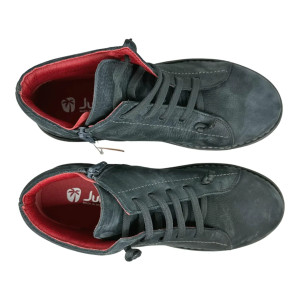 La Sneakers di Jungla 7552 è alta alla caviglia e facile da calzare grazie alla comoda cerniera interna ed ai lacci elastici regolabili. E' caratterizzata da flessibilità e leggerezza ed una suola grintosa. La tomaia è in morbida pelle, la suola è in gomma antiscivolo  con 3,5cm di rialzo mentre la soletta è in microfibra super traspirante e morbida. La comodità è massima grazie alla sua forma che accoglie dolcemente il piede. Ideale per chi vuole una calzatura comoda e versatile per ogni occasione.