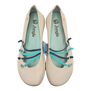 La Ballerina 8146 con elastici sottili di Jungla è caratterizzata da flessibilità e leggerezza. La tomaia è in morbida pelle con 4 elastici di vari colori. La suola è in gomma mentre la soletta che è rimovibile è in microfibra super traspirante e morbida. La comodità è massima grazie alla sua forma che accoglie dolcemente il piede. Ideale per chi vuole una calzatura comoda e versatile per ogni occasione.