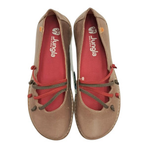 La Ballerina 8146 con elastici sottili di Jungla è caratterizzata da flessibilità e leggerezza. La tomaia è in morbida pelle con 4 elastici di vari colori. La suola è in gomma mentre la soletta che è rimovibile è in microfibra super traspirante e morbida. La comodità è massima grazie alla sua forma che accoglie dolcemente il piede. Ideale per chi vuole una calzatura comoda e versatile per ogni occasione.