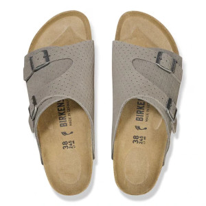 Il modello BIRKENSTOCK Zürich coniuga la stabilità della scarpa chiusa e la leggerezza del sandalo, e riscuote successo in pari misura fra uomini e donne. La versione chiusa lateralmente, ma aperta nella zona del tallone e delle dita assicura una buona areazione della pianta del piede. Al design naturale contribuisce la tomaia in pelle scamosciata particolarmente morbida che abbraccia il piede come una seconda pelle. Il modello ha la pianta nella versione Stretta con il plantare anatomico nella versione classica di birkenstock. Questo è in sughero, un prodotto naturale che isola dal caldo e presenta ottime proprietà ammortizzanti che ti donerà ancora maggior comfort. Il modello è nella colorazione Stone Coin .