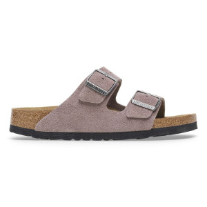 Il modello Arizona di Birkenstock è forse il modello più iconico della collezione e viene presentato in tantissime varianti di colore e plantari. Due fasce avvolgono dolcemente il piede che viene sostenuto dal famoso plantare. La tomaia in questa versione viene presentata in pelle scamosciata avvolgente e particolarmente morbida che abbraccia il piede come una seconda pelle. La colorazione è il nuovo Faded Purple che è una tinta neutra e renderanno questo modello sempre attuale e di moda. Il modello ha la pianta nella versione Stretta con il plantare anatomico nella versione classica di birkenstock. Questo è in sughero, un prodotto naturale che isola dal caldo e presenta ottime proprietà ammortizzanti con un inserto aggiuntivo in schiuma che ti donerà ancora maggior comfort. La suola in EVA è leggera e antiscivolo. Chi non ha mai provato Arizona non sa cos'è Birkenstock.