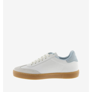 Il modello 1126206 BERLIN CICLISTA Effetto PELLE e Crosta sono delle sneakers bianche per donna realizzate in materiale effetto pelle e pezzi di scamosciato. Dettagli in tonalità pastello sulla V laterale e sulla parte posteriore. Suola traslucida color caramello per un tocco di stile rétro. Sono inoltre dotate di una soletta ancora più ergonomica realizzata con materiali riciclati, che offre un comfort superiore a ogni passo.