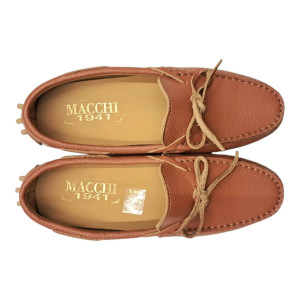 E' prodotta interamente e con amore dal nostro artigiano di fiducia che sa lavorare con professionalità e usa materiali di alta qualità. La tomaia è in pelle definita dollaro con fodera in pelle. Il sottopiede interno è estraibile ed è supercomfort ed è rivestito in pelle. La suola è formata da gommini piolini che escono della tomaia in camoscio. Leggerezza, flessibilità e pellami di prima qualità sono le caratteristiche di questa scarpa fatta con amore.