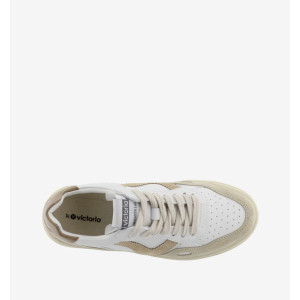 sono delle sneakers sportive bianche unisex realizzate in materiale effetto pelle e inserti in crosta di pelle. Dettagli colorati nella V laterale e nell'inserto posteriore con il logo del marchio. Dettaglio a finestra sul lato. Suola leggermente ambrata di 3,5 cm. Comprendono una soletta estraibile imbottita per un maggiore comfort.