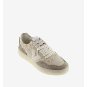 sono scarpe sportive di Victoria in tela sfilacciata con parti in effetto casmocio tono su tono. V di victoria laterale in effetto pelle bianca a contrasto. Chiusura con lacci bicolore: alcuni bianchi e altri tono su tono. Suola bianca in TPR traslucido.