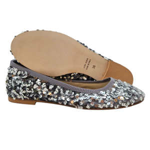 La nostra ballerina con pailettes  P290 è prodotta interamente ed artigianalmente in Italia. L'artigiano che la produce lo fa con competenza e amore. La principale caratteristica è lapresenza di paillettes che donano un tocco unico a tutti i tuoi abbinamenti. La tomaia è in morbida e foderata in tessuto mentre il sottopiede è in pelle liscia. La suola è in cuoio con tacchetto di gomma di 1cm.  Questo modello è oramai diventato un bestseller delle vendite primaverili.