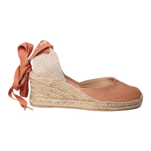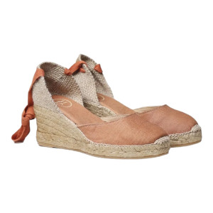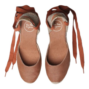 Calonge è il modello di Toni Pons versatil e da indossare in qualsiasi occasione grazie alla sua comodità. La punta è in morbido lino e il tallone in juta e le stringhe incrociate sulla parte alta della gamba donano uno stile particolare e originale. La suola interna è foderata in tessuto traspirante mentre la zeppa esterna è fatta in juta e gomma.  La parte della tomaia in lino è unita alla suola mediante cucitura a mano con filo di cotone come da vera tradizione.  La zeppa ha un'altezza totale di 7 cm, dei quali 5 appartengono al tacco e 2 al plateau.