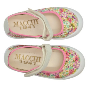 La nostra Ballerina D 09 in Cotone con inserti in Crosta Macchi 1941Kid  è una scarpina bassa che ha una comoda chiusura con uno strappo a velcro sul collo del piede che renderà indipendente la tua bambina. E' prodotta interamente e con amore dal nostro artigiano di fiducia che sa lavorare con professionalità e usa materiali di alta qualità. La tomaia è in Cotone con il velcro in camoscio ed è a contrasto con la tomaia e presentano un sottopiede interno estraibile che è ricoperto di tessuto traspirante. Questa scarpina ha la suola antiscivolo e prodotta con pvc andando a recuperare gli scarti della produzione per un mondo più green. La sapiente lavorazione artigianale unita al fatto di poter personalizzare la scarpa rendono ogni calzatura unica e ricercata per un prodotto fatto a mano e 100% Made in Italy.