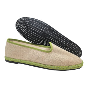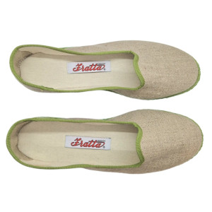 Questa versione viene fatta con la sapiente costruzione a sacchetto e successivamente stirate. Questo tipo di lavorazione la rende più "strutturata" e senza pieghe donandole maggiore qualità sia nella lavorazione che estetica senza perdere in morbidezza e comodità. La suola in gomma (interamente cucita) non è piatta ma presenta un tacchetto di 0,5 cm.