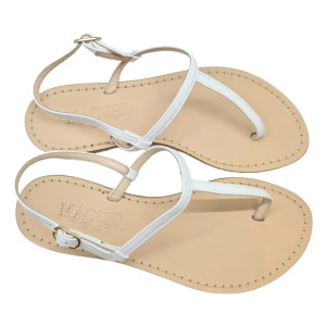 Il classico Sandalo Caprese a T con fibbia ed in nappa è prodotto dal nostro artigiano di fiducia secondo la tradizione locale. Questo classico Sandalo Caprese con tomaia composta da una sottile T in pelle che parte dal collo del piede fino a raggiungere l'infradito. La caviglia è circondata da un sottile cinturino di pelle regolabile con una classica fibbia dorata. La Suola è in vero cuoio 100% italiano e a contatto con il piedi garantisce traspirabilità. La tomaia in vera pelle  selezionata di prima scelta è cucita a mano in cotone resistente e duraturo. Il sottopiede in cuoio è cucito rigorosamente a mano alla suola con fibre naturali di alta qualità. Il tacco alto 1,5 cm è leggero e resistente in cuoio e gomma antiscivolo.