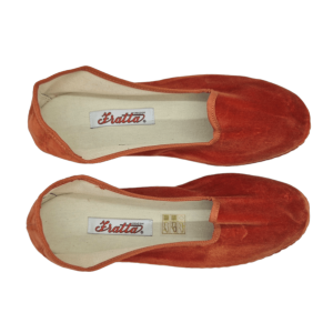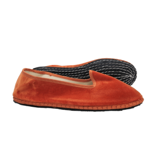 Questa versione è destrutturata ovvero non stirata e più morbida. La suola in gomma riciclabile è interamente cucita e la rende ideale anche per l'utilizzo da esterno e quotidianamente. La tomaia è in morbido velluto mentre la fodera ed il sottopiede sono in cotone. Non presentano scatola ma vengono vendute chiuse su se stesse e piatte.