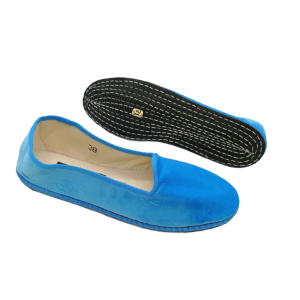 Questa versione è destrutturata ovvero non stirata e più morbida. La suola in gomma riciclabile è interamente cucita e la rende ideale anche per l'utilizzo da esterno e quotidianamente. La tomaia è in morbido velluto mentre la fodera ed il sottopiede sono in cotone. Non presentano scatola ma vengono vendute chiuse su se stesse e piatte.