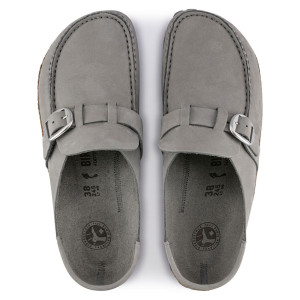Il modello Buckley di Birkenstock è uno zoccolo / Sabot aperto sul tallone che ricorda lo stile di un mocassino con il plantare in sughero a vista. Ideale per un uso a 4 stagioni da usare in casa ma anche per esterno ed essere sempre attuale e alla moda ma sopratutto comodi. La tomaia in questa versione è in morbida pelle nubuck e la colorazione è Dove Gray . Grazie al cinturino posto nella parte superiore della tomaia regolabile con una fibbia di metallo fissa sarà possibile regolare il sabot come preferite. Il modello ha la pianta nella versione Stretta con il plantare anatomico classico di birkenstock. Questo è in sughero, un prodotto naturale che isola dal caldo e presenta ottime proprietà ammortizzanti. E' a sua volta ricoperto in pelle scamosciata in tinta con la tomaia che rimane morbida al tatto e coccolerà i tuoi piedi.