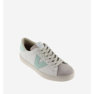 Il modello Berlin è una classica sneakers unisex di Victoria. La tomaia è in pelle di vitello bianco e senza cromo mentre la punta è in pelle scamosciata. E' caratterizzata dalla V di Victoria che insieme al tallone hanno una colorazione a contrasto. La fodera invece è in tessuto e cotone. La Suola è trattata con oli vegetali anziché minerali e ciò le rende più biodegradabili.