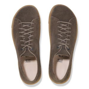 Il modello Bend Low Decon Men è la sneaker bassa di Birkenstock adatta ad ogni situazione. La pelle in questa versione è scamosciata e rimane morbida e avvolgerà il piede come una seconda pelle perchè è sfoderata. La colorazione è il nuovo Concrete Grey che si presta ad essere abbianato con facilità in qualsiasi stagione e con qualsiasi outfit. Questa versione spicca per il suo materiale particolare: la cosiddetta pelle Flesh Out Grazie al dispendioso processo di lavorazione, la parte interna della pelle nabuk acquista una sensazione morbida e vellutata al tatto per poter essere impiegata come tomaia della scarpa. Il famoso plantare anatomico che caratterizza la linea Birkenstock è in sughero ricoperto di pelle scamosciata ed è estraibile. Sosterrà il tuo piede con la calzata nella versione Normale ( ovvero da Uomo)