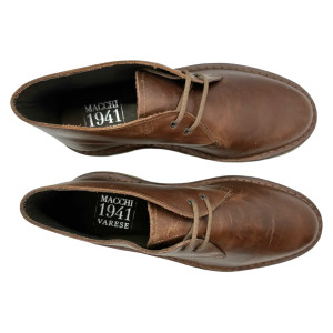 Grande cura in ogni particolare con materiali unici. Il modello 2023 tipo "Desert Boot" è una delle calzature della nostra linea realizzate artigianalmente con competenza e amore e nel corso degli anni ha avuto un grande successo. Il nostro artigiano di fiducia sa lavorare con professionalità e usa materiali di alta qualità. E' un polacchino stringato a due occhielli. La suola è vera gomma para, duratura e antiscivolo ma la principale caratteristica è la flessibilità.  I pellami sono italiani e morbidi alcuni in pelle oleata e altri in pelle scamosciata. La sapiente lavorazione artigianale unita al fatto di poter personalizzare la scarpa con di altri colori rendono ogni calzatura unica e ricercata per un prodotto fatto a mano e 100% Made in Italy.