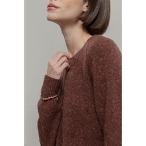 è una maglia unisex in cashmere sostenibile ed è un capo inclusivo e comodo. Il particolare filato di tipo Donegal gli dona un effetto bottonato e melangiato, cromaticamente irregolare e per questo unico.